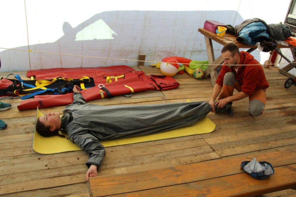 Гидрокостюм для спасработ используется для пострадавшего, которого необходимо транспортировать из-за сифона или полусифона пещеры или любой другой подтопленной области. Главное преимущество данной модели- ее легкость- всего 2 кг. Гидру можно раскатать вдоль тела пострадавшего и загидровать ниже ног. В сложенном упакованном виде: 15*20*30см.