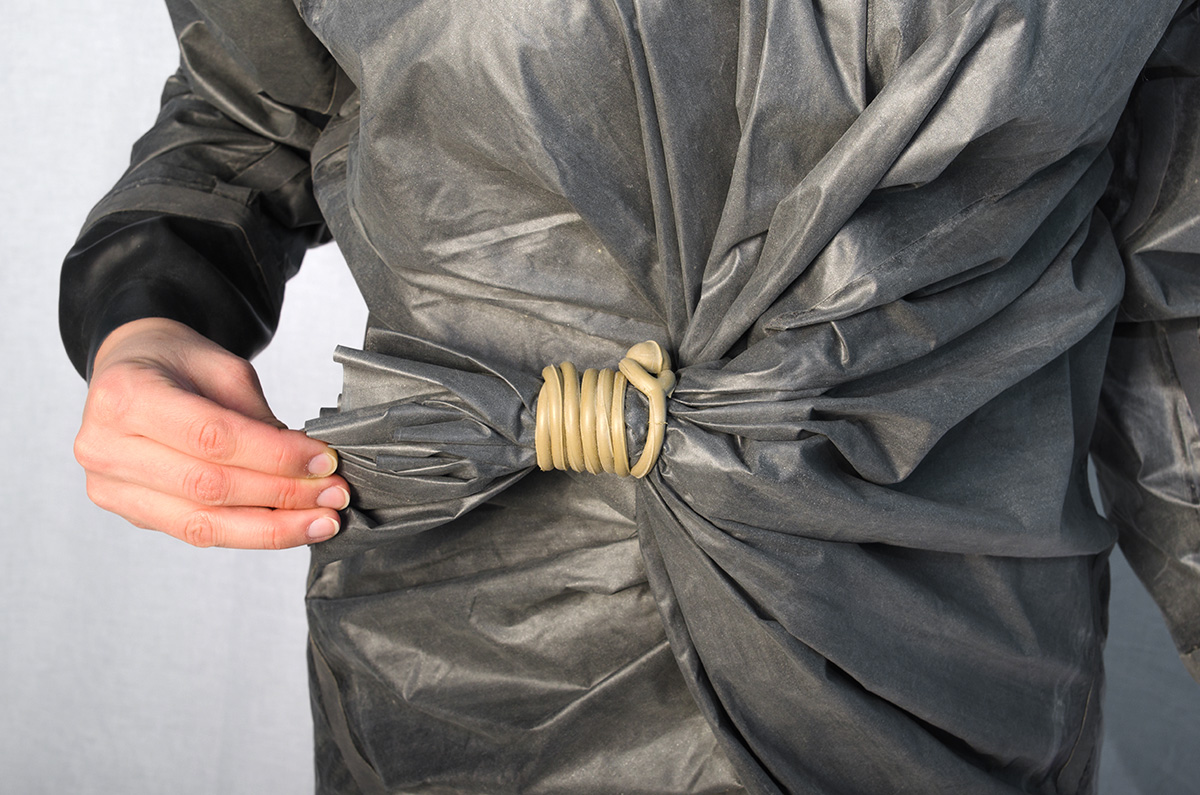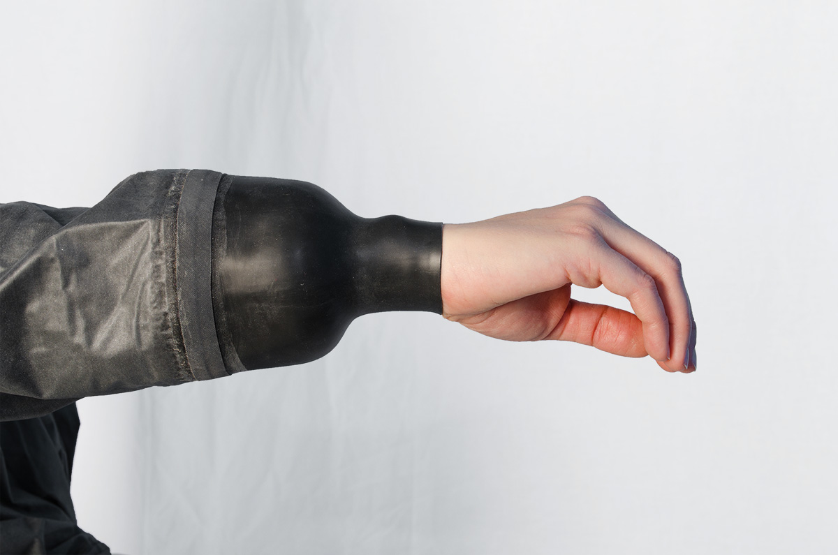 Обтюрация: две ручные латексные манжеты и капюшон из тонкой эластичной резины.